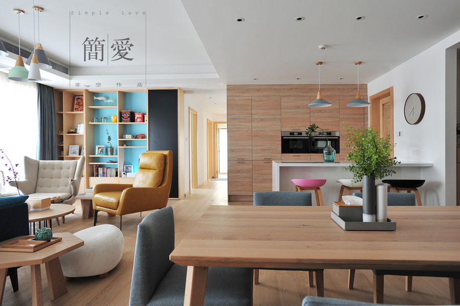 舍弃一切繁复和多余装饰,本案设计强调日常生活本身的情趣,空间主调为明快的白色点缀灰蓝色和明黄,稍带活泼俏皮的中性感之外,是独特的宁静韵味,北欧质感家具和布艺随意摆布,创造一种轻松的和谐调调,亲切、友好、优雅,弥漫生活的清甜味道。
